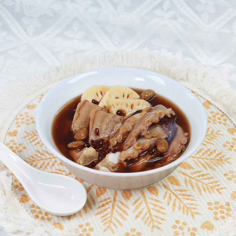 成份 : 水、粉葛、蓮藕、豬軟骨、赤小豆、章魚、扁豆、鹽